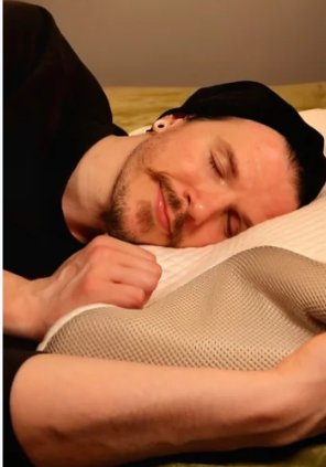 Not at all. The pillow is made with adaptive memory foam and a soft adjustable strap that holds it securely in place without causing discomfort. Breathable, hypoallergenic materials also prevent overheating, so you stay cool throughout the night.